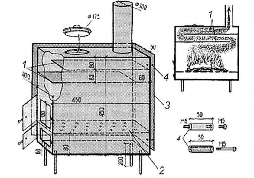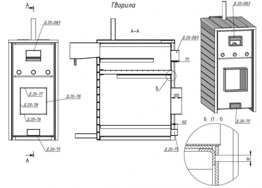 Предлагаем вам для ускорения процесса готовые чертежи — по ним можно быстро и, главное, правильно собрать печь на дровах для вашего гаража и остаться довольным.