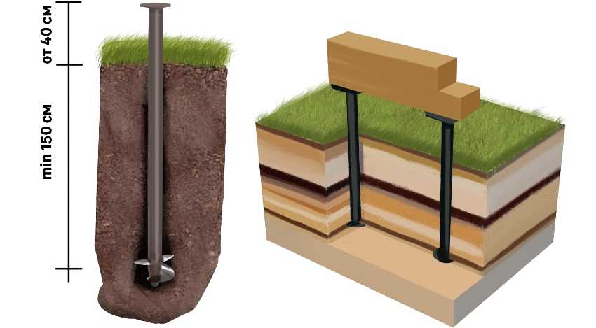 - С помощью винтовых свай, закручиваемых в грунт. Характеризуется быстрой скоростью установки, но высокой ценой – ввиду необходимости приобретения специальных материалов и заказа спецтехники. Кроме того, железный столб в земле служит не дольше 50 лет, а затем разрушается.