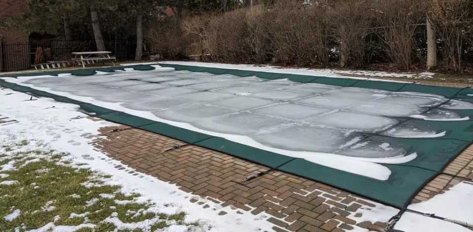 Из свойств материала и особенностей конструкции пластиковых бассейнов вытекает, что благодаря высокой морозоустойчивости и прочности болтов их можно не демонтировать на зимний период. Достаточно всего лишь защитить специальным укрытием от попадания внутрь засоряющих предметов.