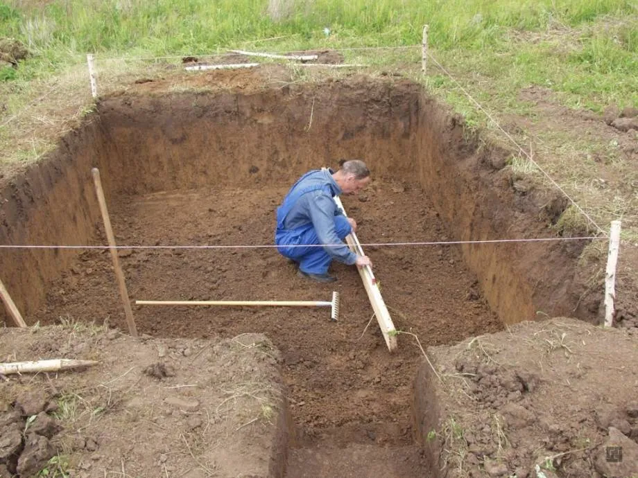В грунте копается котлован. Его размеры и форму вы вольны задать любую. Чаще всего эти параметры подсказывает сам участок. Стенки и дно нужно сделать максимально ровными – их нужно утрамбовать и обтесать.