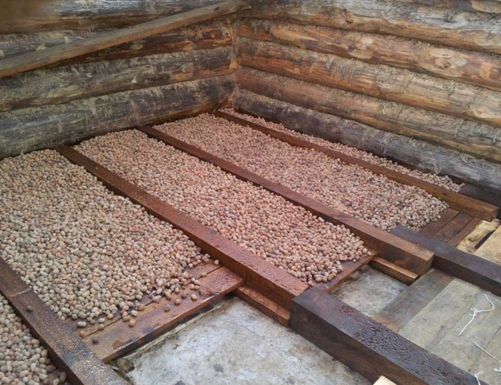 Через него уходит большое количество тепла, особенно в строении на сваях, поэтому важно сделать качественную теплоизоляцию. Чаще всего в качестве материала используют керамзит, который препятствует образованию грибка и конденсата