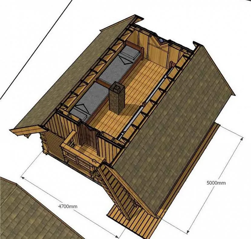 Внутри здания, помимо основных банных помещений и бассейна, подразумевает наличие жилой зоны (комнат для отдыха). В таком варианте пространство зонируют для рационального использования площади строения.