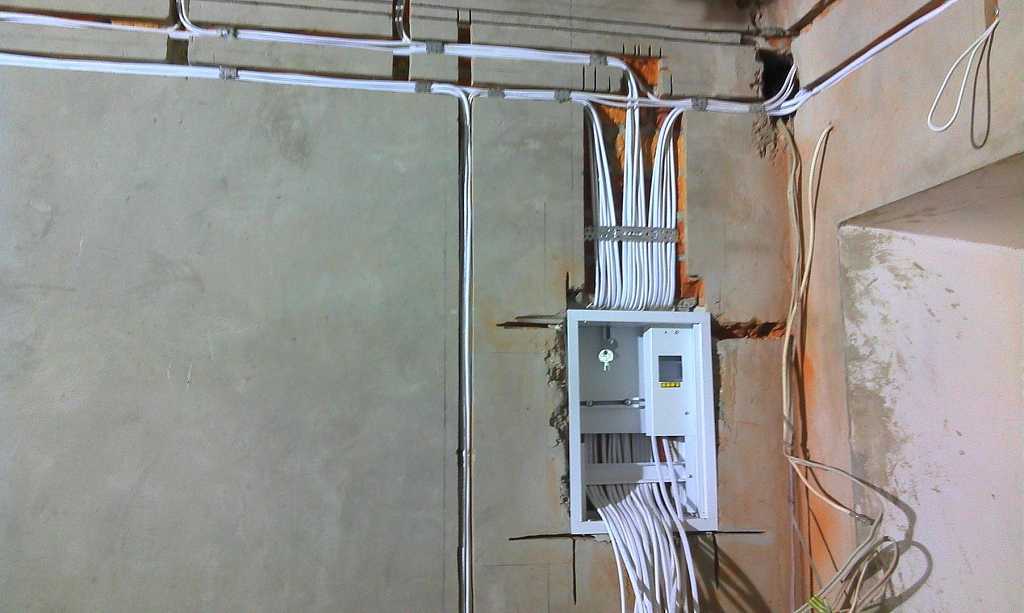 В соответствии с техникой безопасности электропроводка должна быть скрытой. Кабели прокладываются в стенах. Это, как уже отмечалось, повышает безопасность эксплуатации проводки и строения в целом и дополнительно защищает элементы электропроводки от разного рода повреждений.