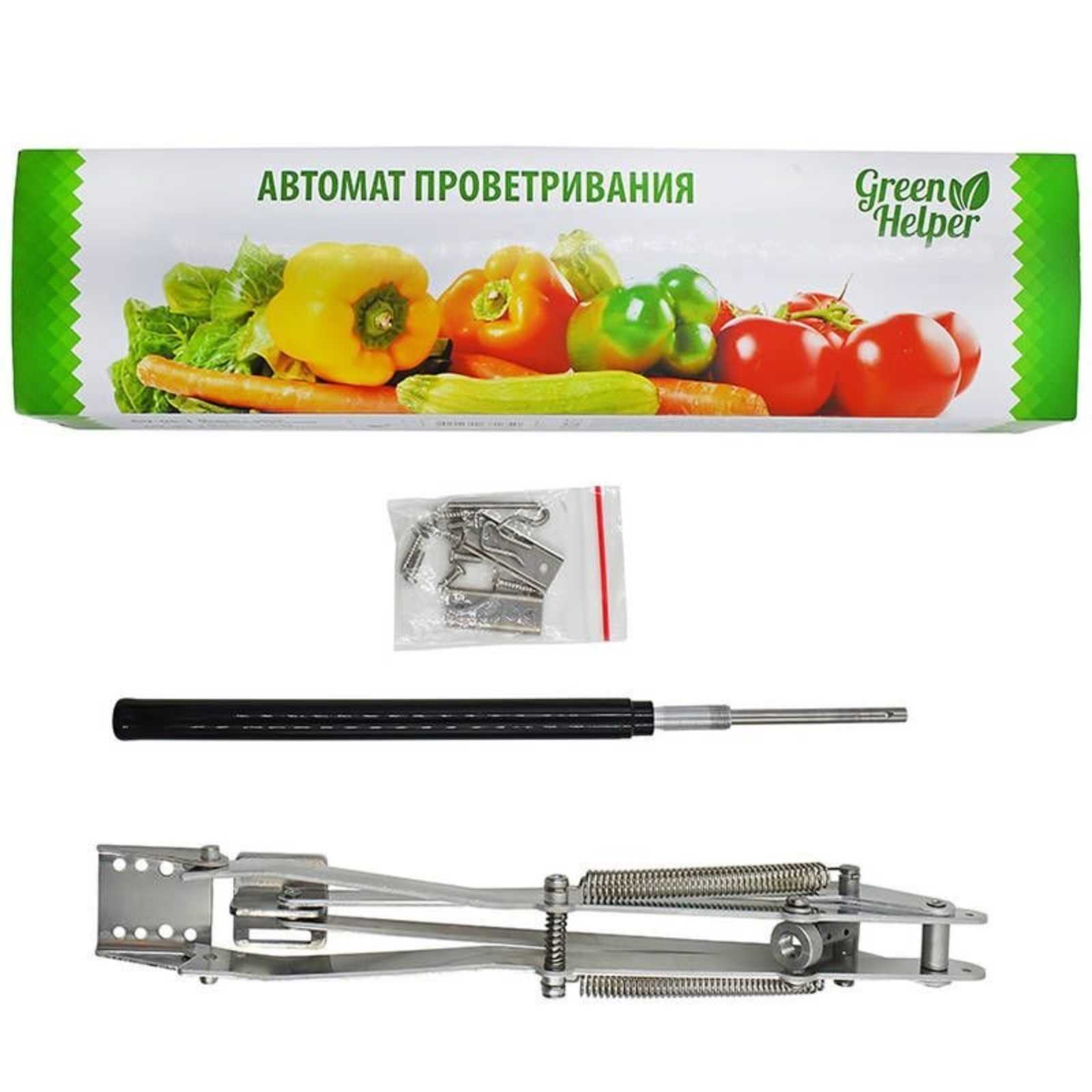Green Helper GV-05-2 – это металлическое устройство для проветривания теплицы, оснащенное двумя возвратными пружинами, которые помогают регулировать температурный режим в теплице в зависимости от наружной температуры. Максимальный вес форточки, которую может удерживать устройство, составляет 8 кг. Температура открытия форточки может быть настроена в диапазоне от 15 до 25 градусов. Цена 2400 р.
