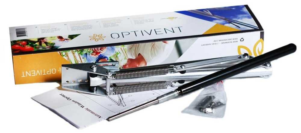 Optivent от J. Orbesen Teknik ApS предназначен для проветривания теплицы и способен работать в широком диапазоне температур от -10 до +50°C. Начальная температура, при которой автомат начинает открывать форточку, может быть регулирована в пределах от +17 до +25°C, а при температуре +30°C механизм полностью открывается. Максимальная высота подъема форточки составляет 45 см, вес 6,5 кг. Цена 3300 р.