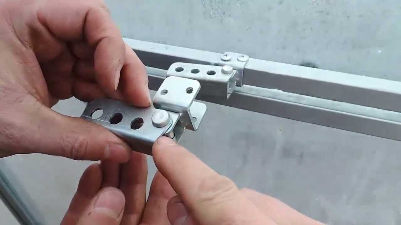- Нижний брусок зафиксируйте с каркасом теплицы, верхний прикрепите к подвижной плоскости форточки.