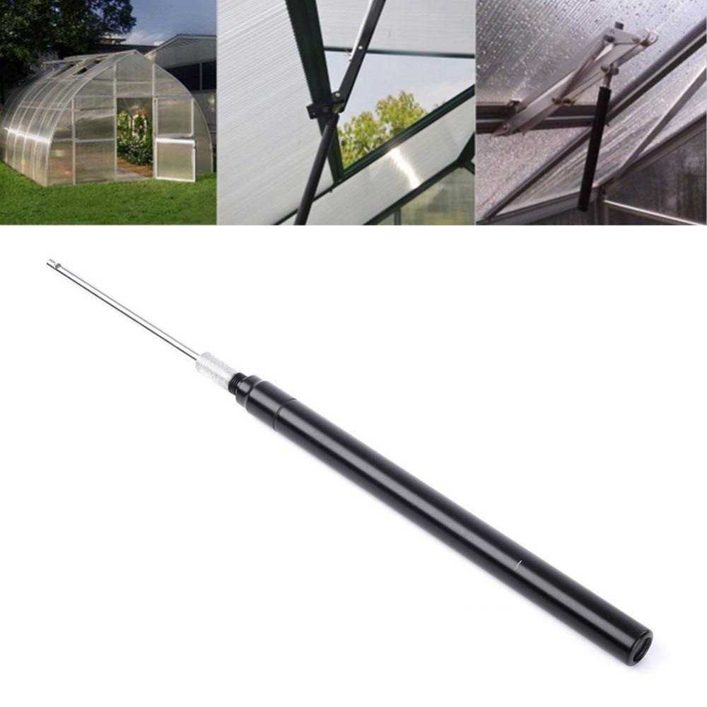 Сегодня на строительном рынке есть немало предложений качественных «толкателей» для тепличных форточек. По внешнему виду они все разные, но принцип действия у них один и тот же – небольшой продолговатый гидроцилиндр наполнен маслом, который расширяется под действием повышенной температуры воздуха в самой теплице и выталкивает собой шток. Шток же соединен с системой рычагов и форточкой. Когда масло остынет, произойдет обратный процесс и форточка закроется.
