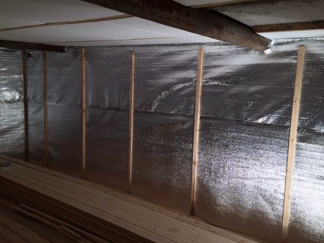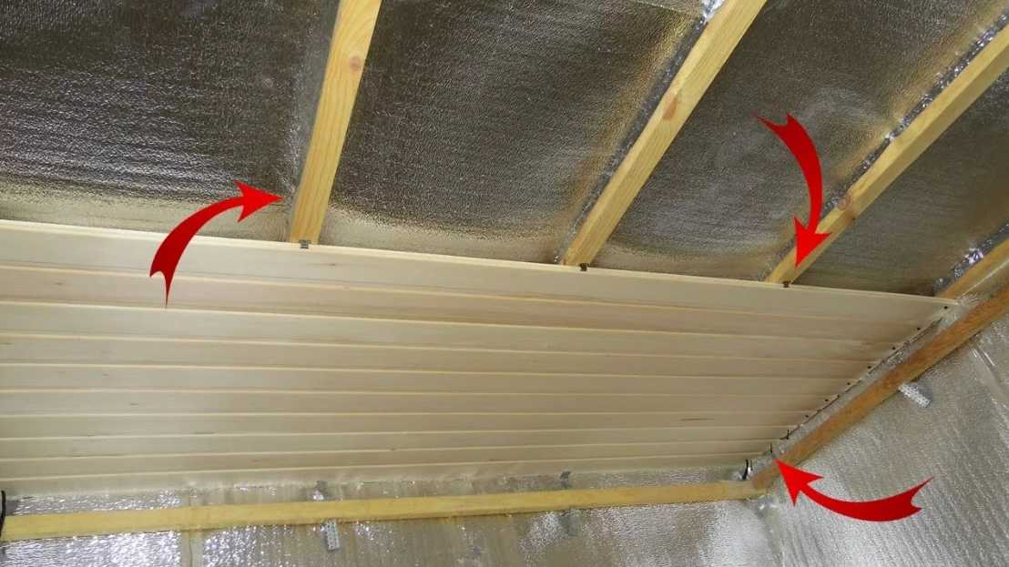 - сверху теплоизоляционный материал покройте пленкой из фольги, а еще сверху – обшейте вагонкой, соблюдая зазор примерно на 10 мм.