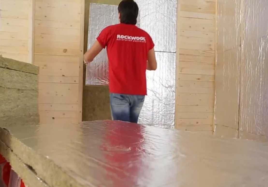 Утепление стен фольгированной минеральной ватой, толщина которой 10 см, производится следующим образом: