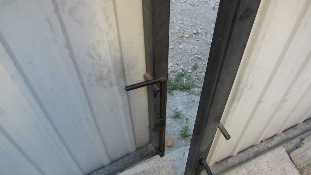 Самостоятельное изготовление не должно вызывать сложностей. Особенно удобен такой запор на калитке из профнастила.