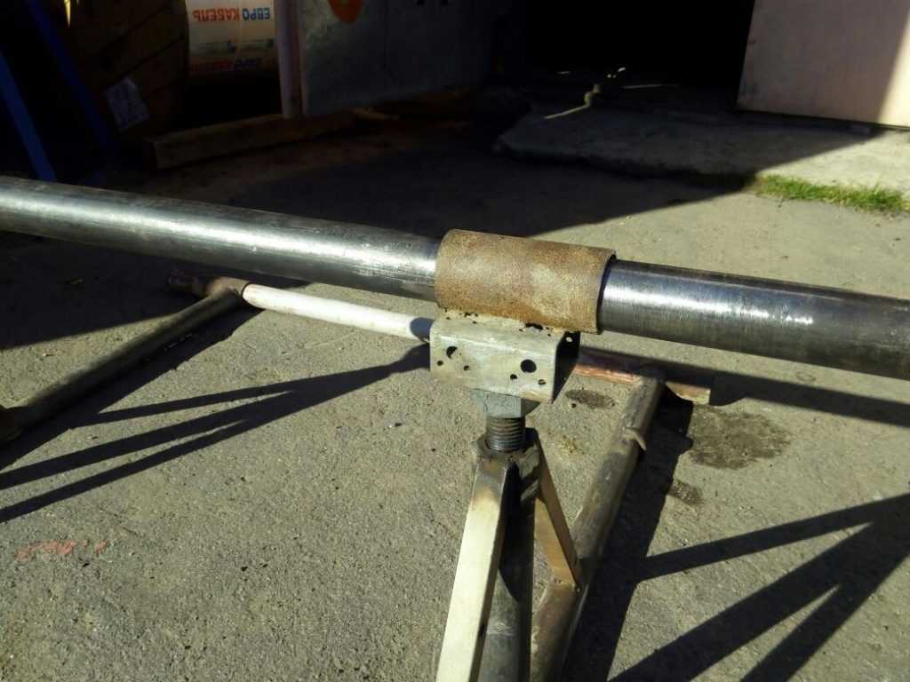 - К противоположной створке крепим трубку (диаметр – чуть больше 20 мм) для плотной фиксации отрезка.